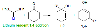 Other questions we are interested in are the following: What determines whether a 1-substituted allylmetal reacts at the α- or γ- position? What determines whether an organometallic reagent adds 1,2 or 1,4 to an α,β-unsaturated carbonyl compound? Why do lithium halides sometimes have such dramatic effects on organolithium reactions? What species are formed when organolithium species are transmetallated to organocerium, manganese, titanium and other organometallics?